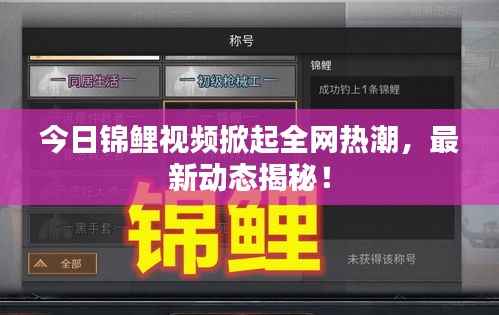 今日锦鲤视频掀起全网热潮,最新动态揭秘!