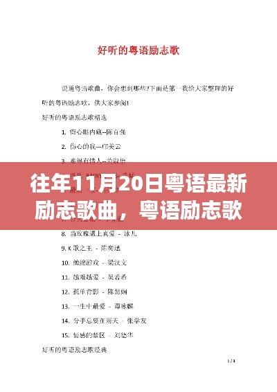 对于喜欢粤语歌曲的朋友来说,寻找往年11月的最新励志歌曲是一种享受也是一种挑战,本指南将指导初学者和进阶用户如何完成这一任务,让你们轻松获取心仪的粤语励志歌曲。